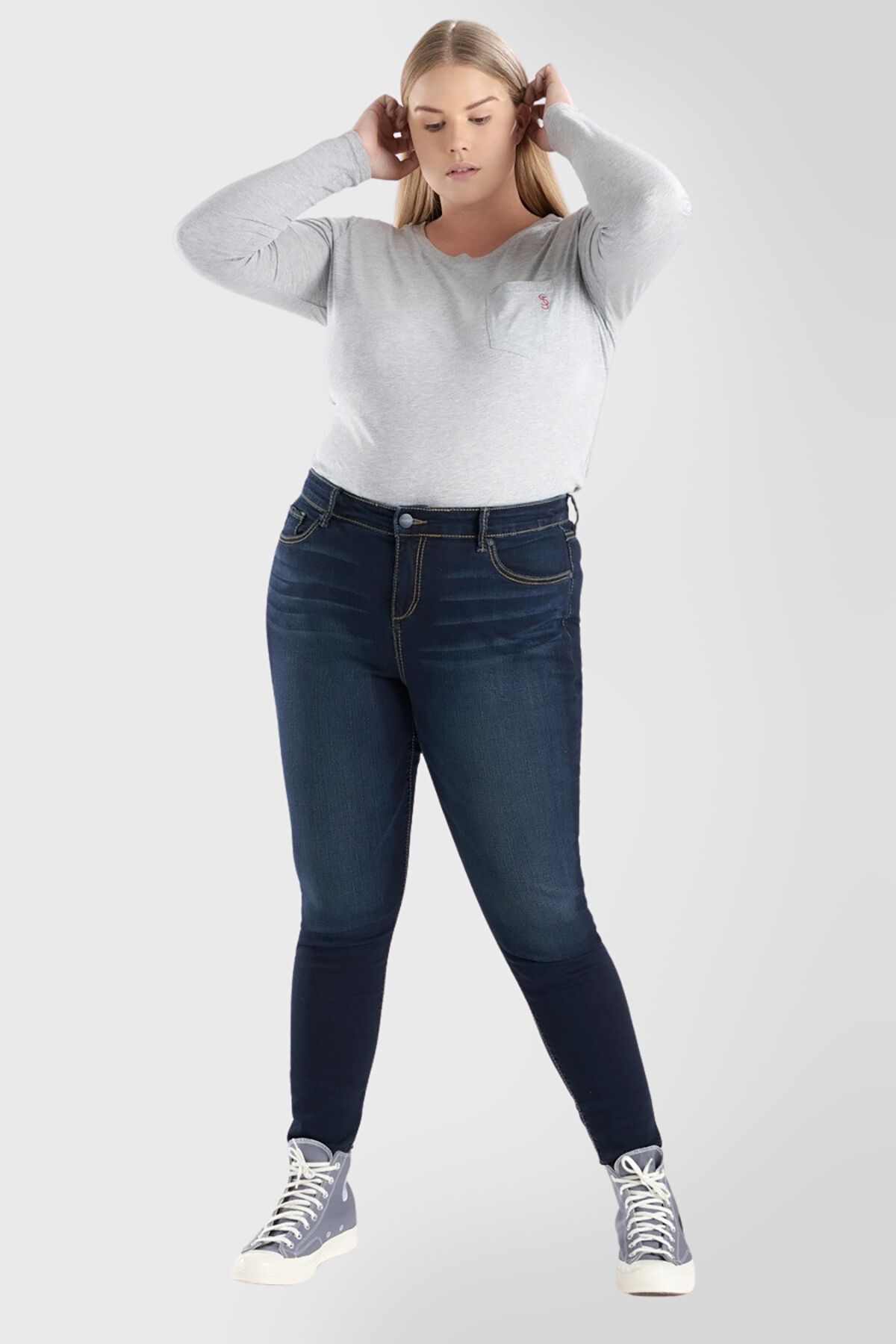 Finally, the fabric can also give you greater comfort. If you want a hint of stretch, look for plus size stretchy skinny jeans that have a hint of elastane in the fabrication. Some skinny jeans can also be skinny jeggings—or jeans that fit like comfy leggings. These styles are great for wearing with tunics and even under short dresses in the fall and winter. Speaking of styling your skinny jeans…