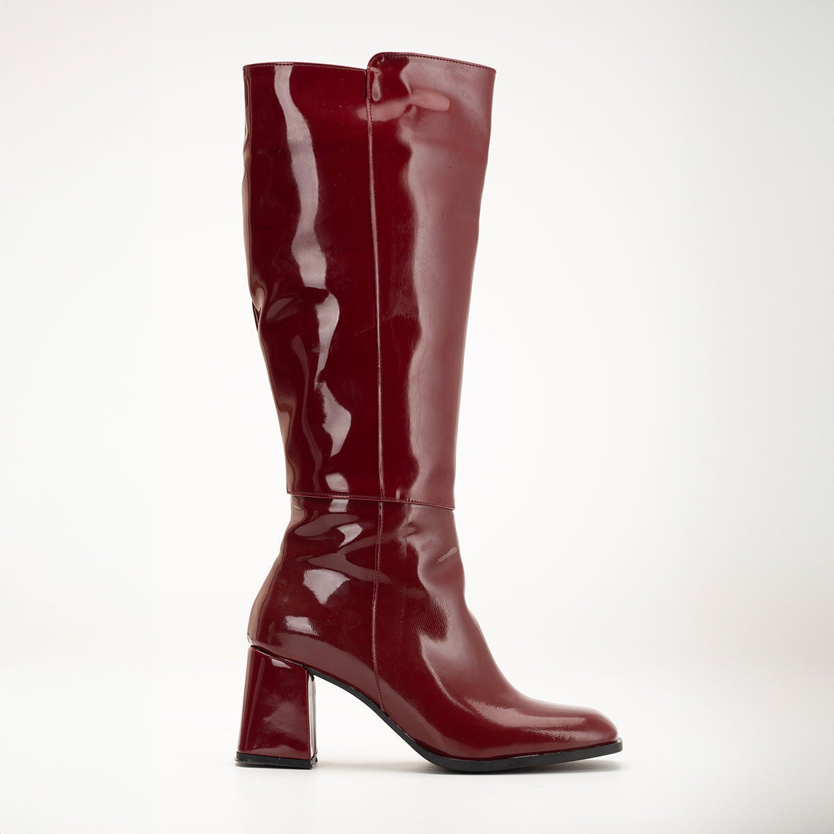 • VALERIE - BURGUNDY PATENT KNEE HIGH BOOTS