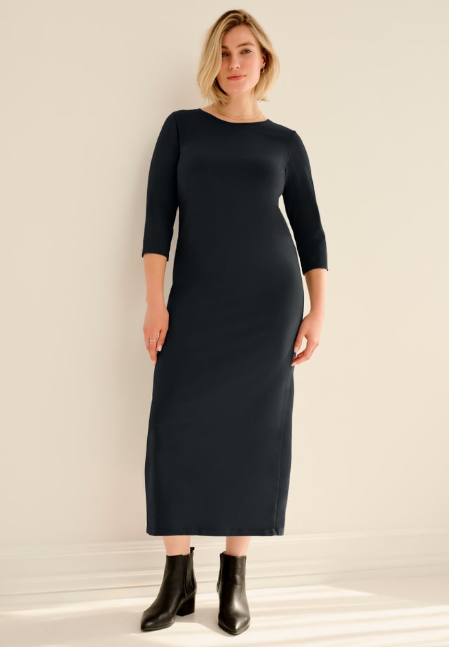 A casual closet staple, this knit maxi dress is a must-have for any well-rounded wardrobe. Crafted from lightweight cotton/spandex jersey with the perfect amount of stretch to be flexible without losing its shape. Pair it with ankle boots and a leather jacket for an edgy look or dress it up with pumps and a clutch—the styling possibilities are endless.