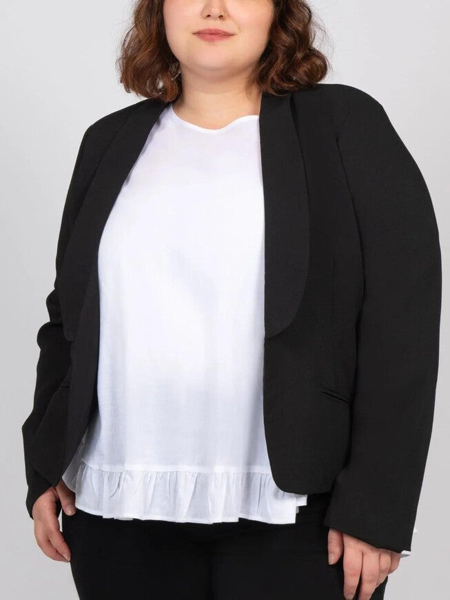 Luce Open Front Blazer Rounded Lapel Black