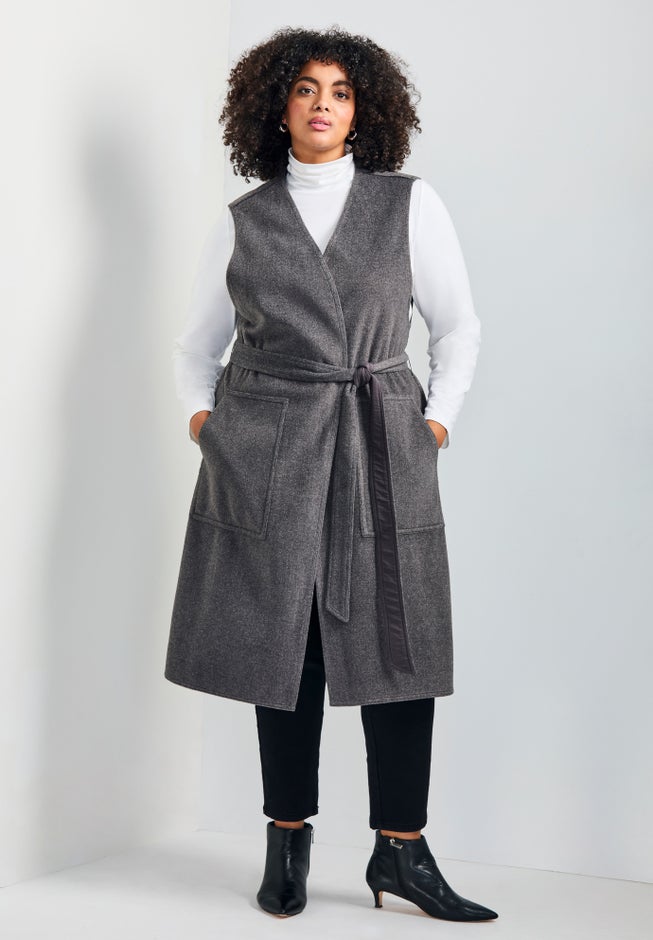 Introducing the Nova Longline Vest—your go-to layer for effortless style! This sleeveless wonder, complete with a self-tie belt and handy pockets, is perfect for adding that extra oomph to any outfit. The brushed fabrication makes it not only chic but also cozy and comfortable. Whether you're dressing it up or keeping it casual, the Nova Vest is sure to become your wardrobe's MVP!