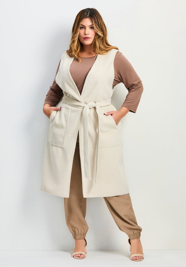 Introducing the Nova Longline Vest—your go-to layer for effortless style! This sleeveless wonder, complete with a self-tie belt and handy pockets, is perfect for adding that extra oomph to any outfit. The brushed fabrication makes it not only chic but also cozy and comfortable. Whether you're dressing it up or keeping it casual, the Nova Vest is sure to become your wardrobe's MVP!