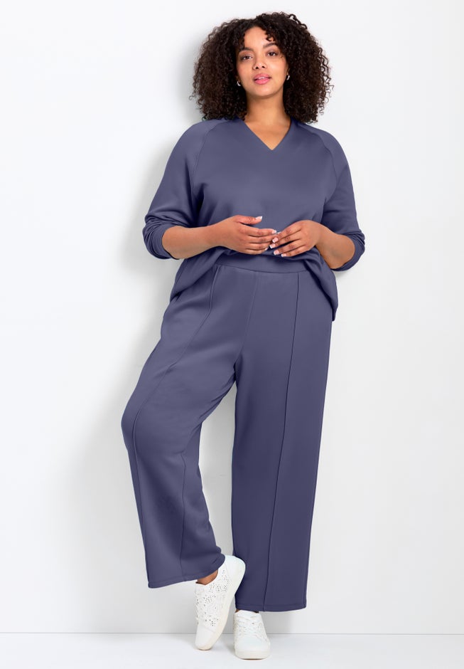 These wide-leg pants feature a front seam detailing for a refined finish. The relaxed fit and smooth waistband offer all-day comfort, making them a stylish choice.