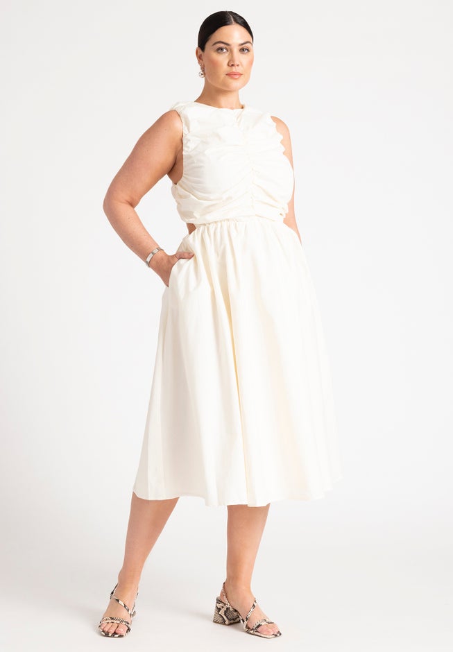 Shirred Bodice Midi Dress
