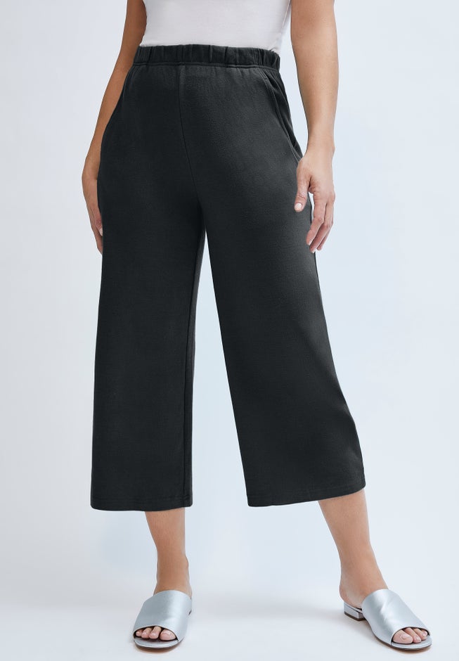 Our soft knit in a comfortable, cropped wide leg silhouette. Pair these flattering, grab-and-go bottoms with a knit tee and denim jacket for easy, all-day wear.