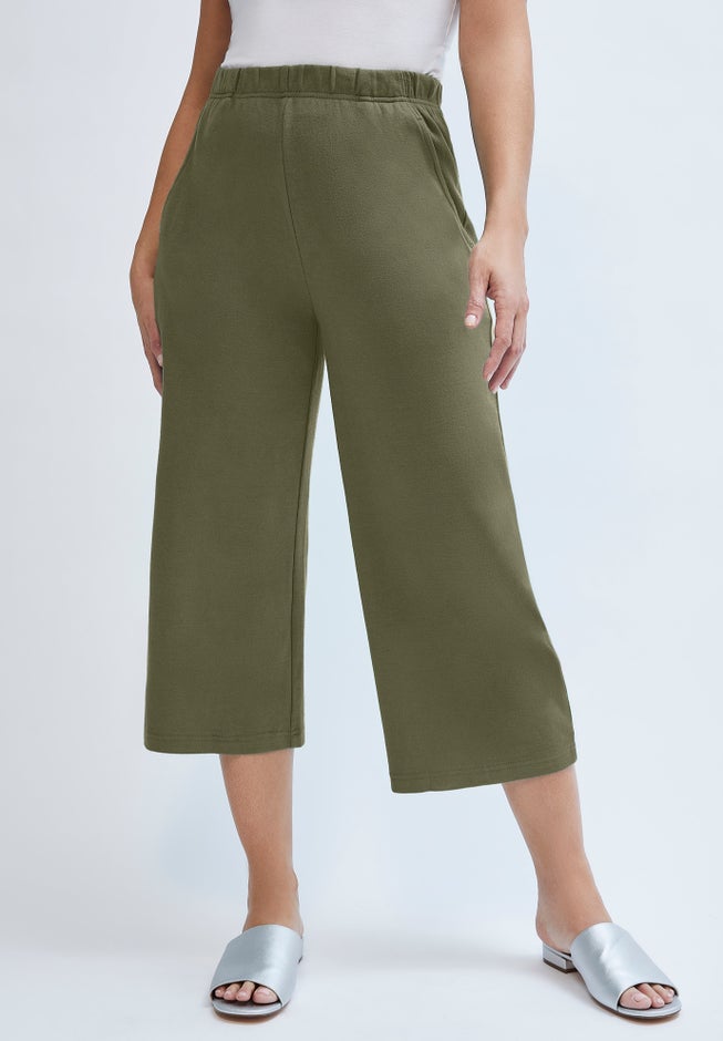 Our soft knit in a comfortable, cropped wide leg silhouette. Pair these flattering, grab-and-go bottoms with a knit tee and denim jacket for easy, all-day wear.