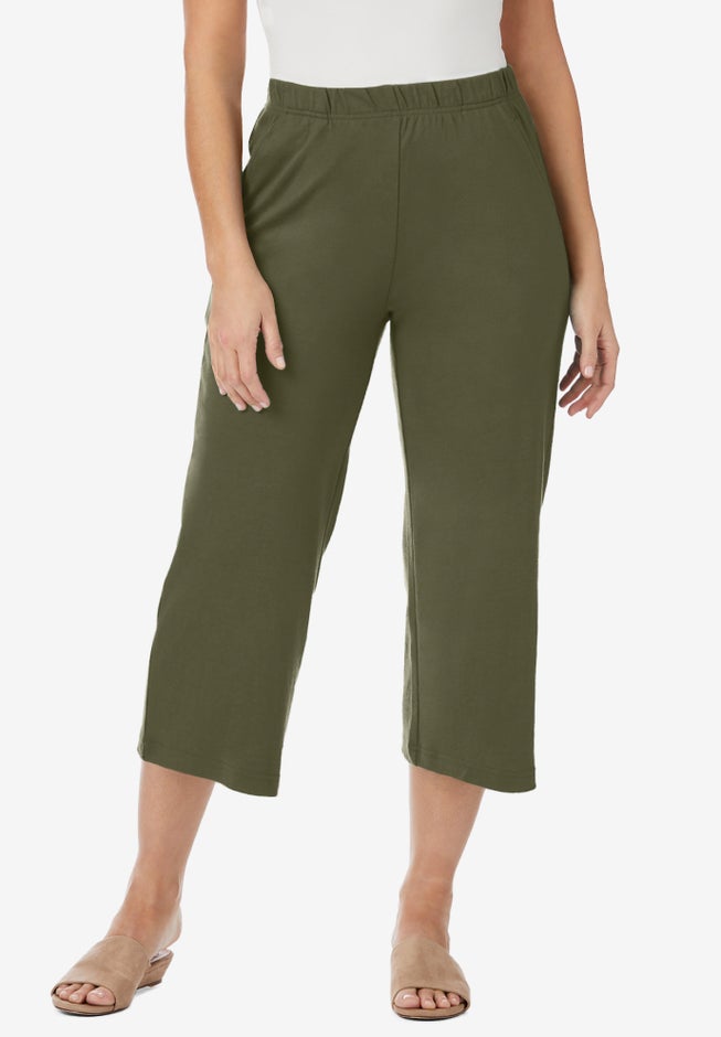 Our soft knit in a comfortable, cropped wide leg silhouette. Pair these flattering, grab-and-go bottoms with a knit tee and denim jacket for easy, all-day wear.
