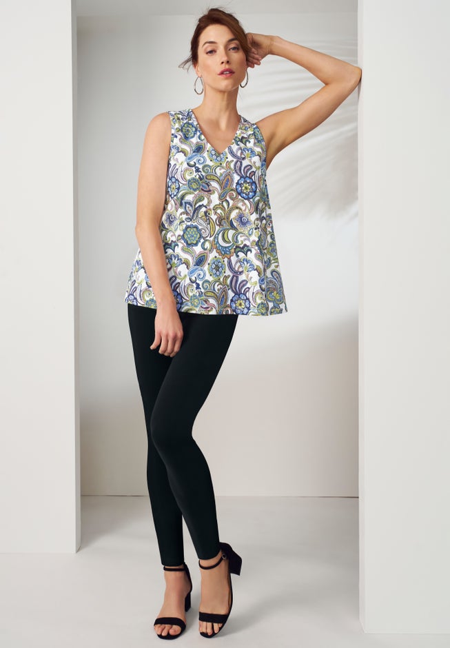 An effortless, V-neck tank in a flattering trapeze silhouette. Pair it with denim and espadrilles to complete your look.