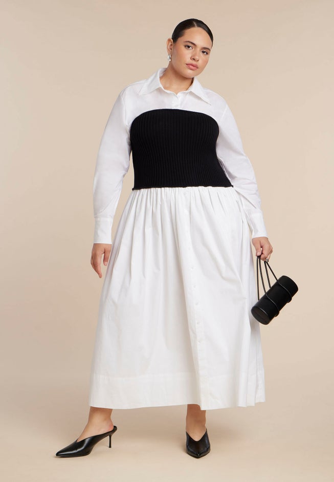 Sweater Twofer Shirt Dress