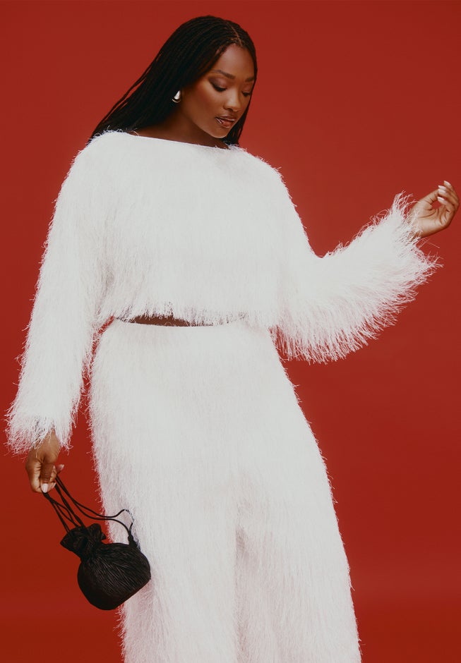 Make a statement in this fringe crop top that dances with every move. A relaxed fit and dropped shoulders keep the look playful and elevated.