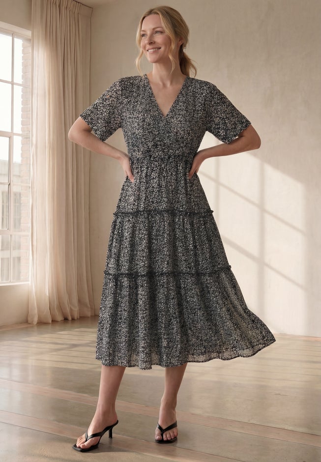 Tiered Midi Dress With Surplice Neckline
