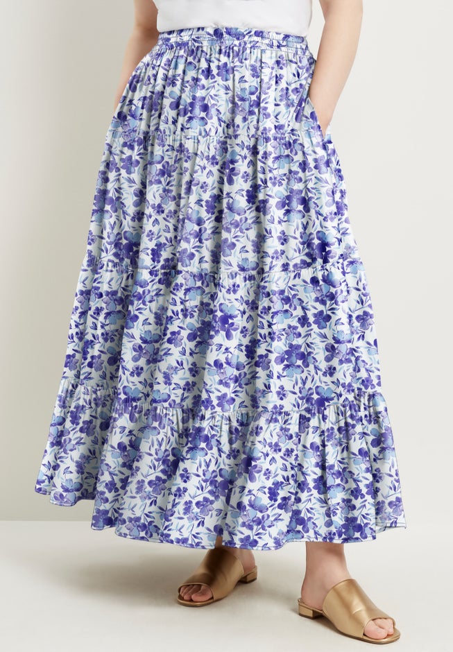 An effortless skirt featuring three rows of tiers to create a full silhouette. Take it through the seasons with a pair of sandals in the summer and a simple sweater throughout the cooler months for a chic look.